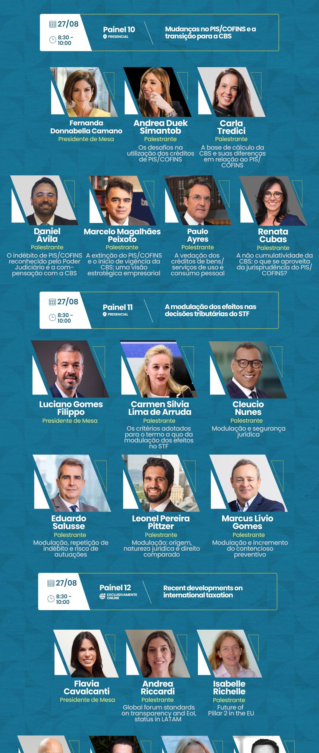 Contamos com a sua presença neste encontro que se consolidou como uma das principais referências do calendário tributário internacional.